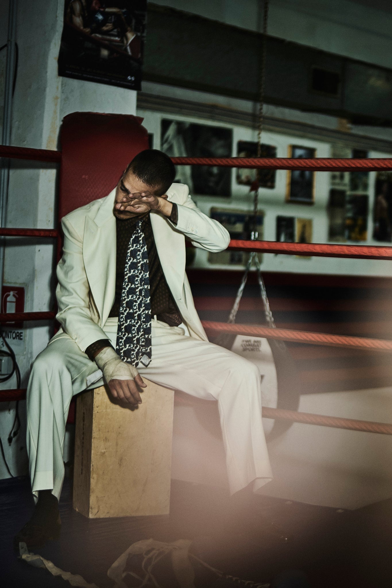 The Charles is a sharp double-breasted blazer with a close fit and strong, structured shoulders. Tailored in white wool with a tonal pinstripe, it features peak lapels. A bold, sculpted silhouette that makes a statement.