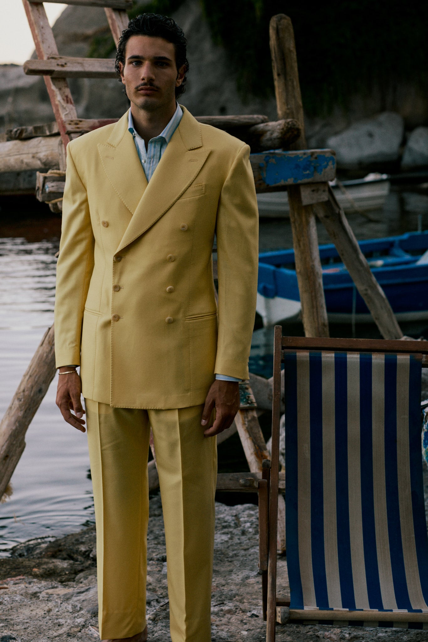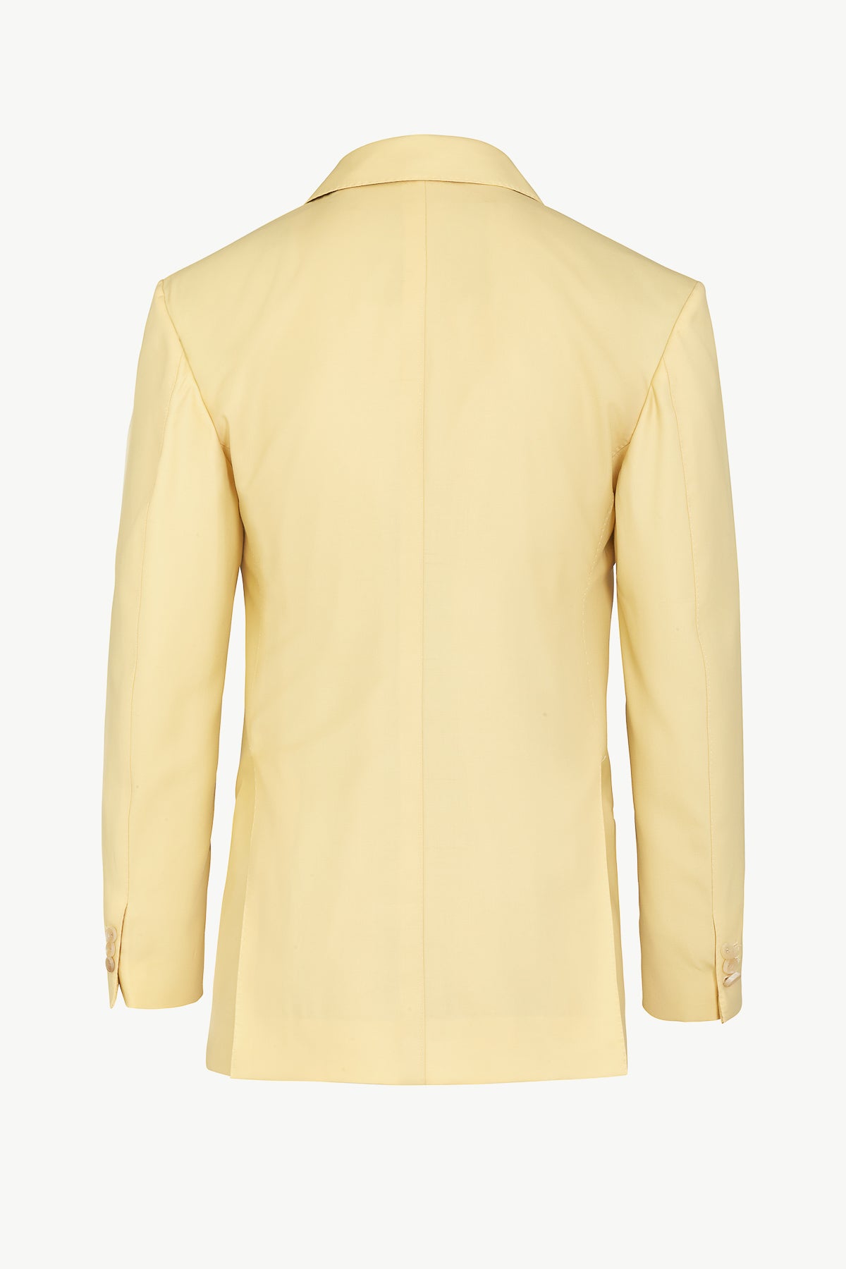 Fitted double breasted blazer with eight buttons in lightweight wool.