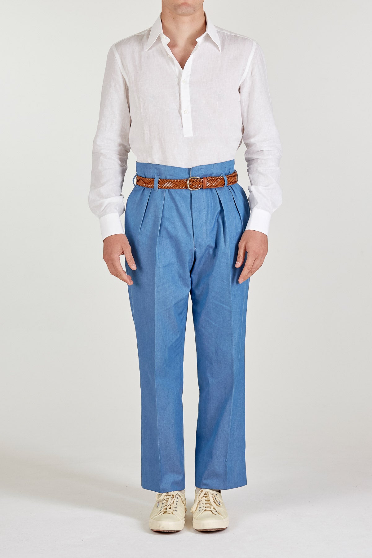 The Taddeo polo is a long-sleeved polo shirt with a pointed collar and a four-button placket. It’s crafted in a breezy off-white linen. The fit is easy but neat, making it a versatile layer for warmer weather.