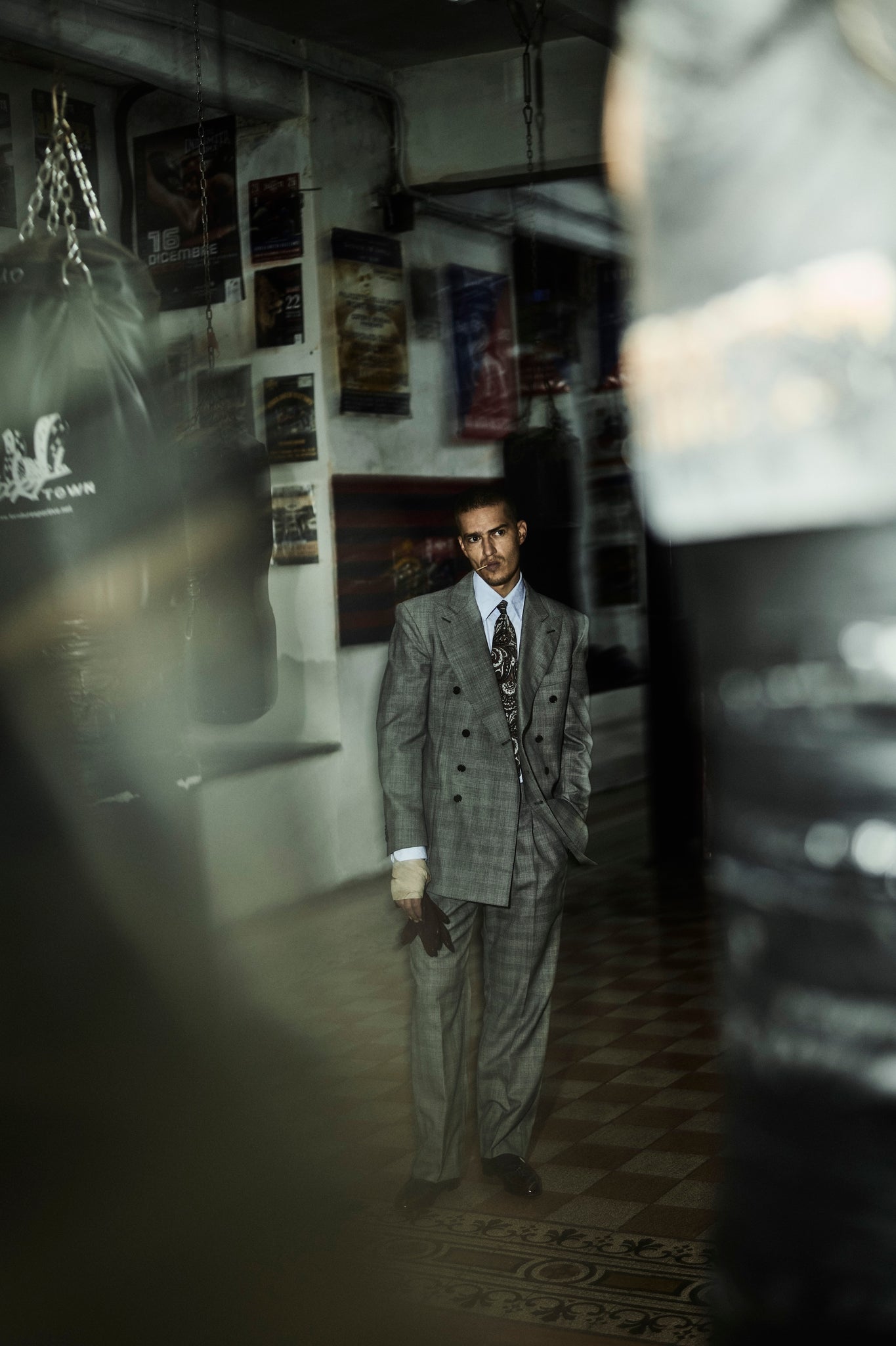 A signature piece in Giuliva’s tailored menswear collection, the Charles Blazer is cut from wool Glen check in black and white. Its strong silhouette features a double-breasted closure, broad peak lapels, and lightly padded shoulders. Fully lined and impeccably constructed, it balances heritage tailoring with a contemporary fit. Order now to receive within the 20th of October