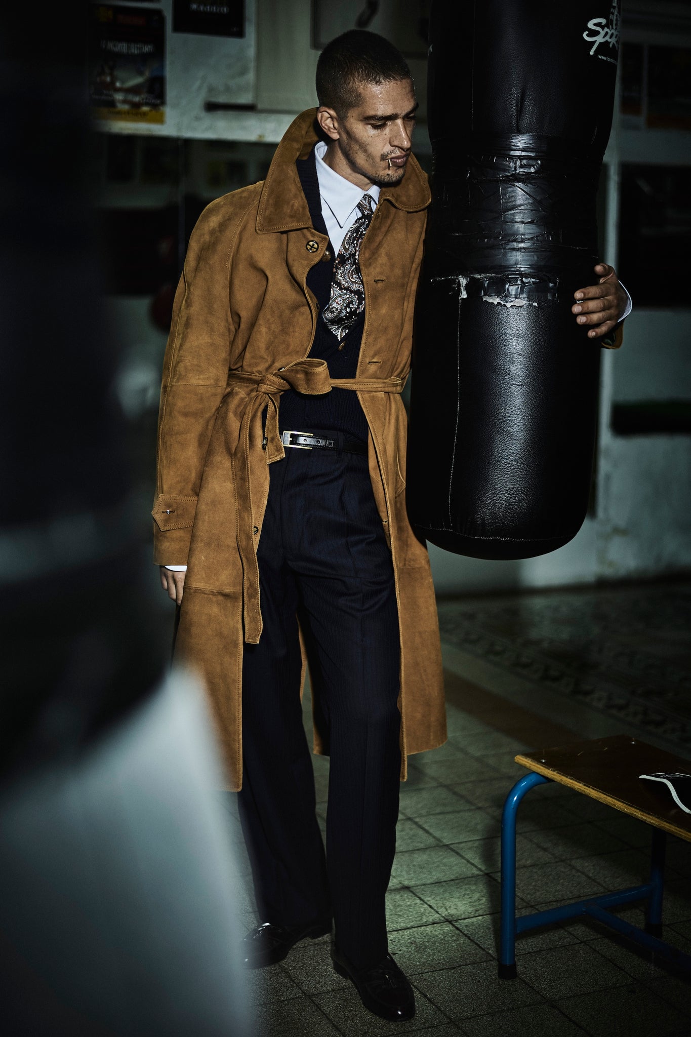 Our Vito trousers are hand-tailored straight-leg trousers crafted in a navy blue wool herringbone. They feature one front pleat, side seam pockets, and a concealed button closure. A small loop at the waistband holds the belt buckle in place, while a discreet pocket hidden under the waistband is designed to hold coins or a watch. At the back, a small opening in the waistband adds ease and comfort. True to traditional tailoring, they come un-hemmed for a personalized fit.