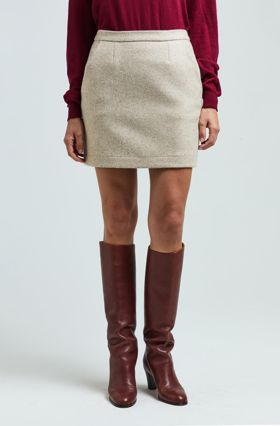 Our Theo miniskirt is a short fitted skirt with side pockets and a back zipper and fully lined.