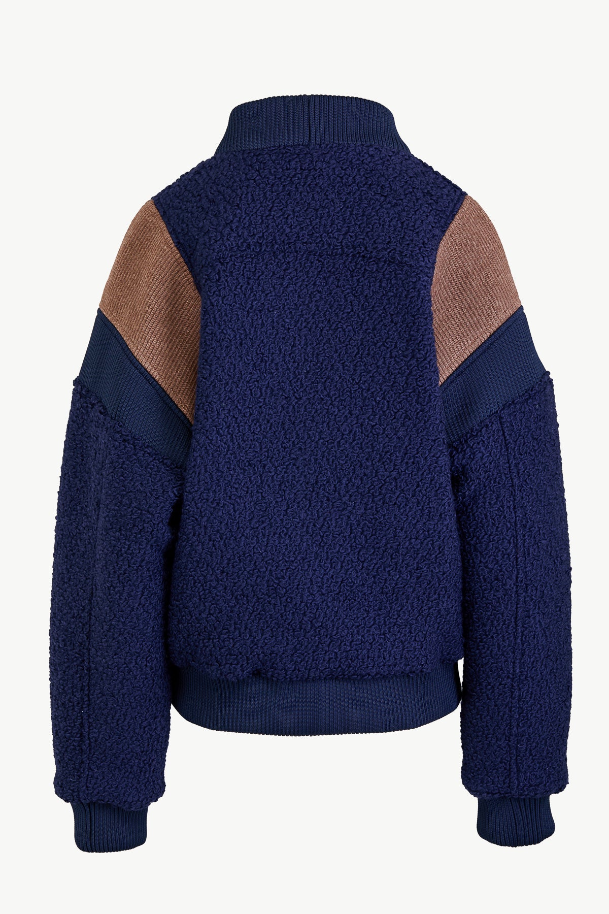 The Aurelia Jacket is crafted from chunky wool bouclé with ribbed knit inserts on the shoulders, cuffs, and hem and is fully lined. It features a zip closure, two front flap pockets, and a lightly padded structure for warmth and volume.