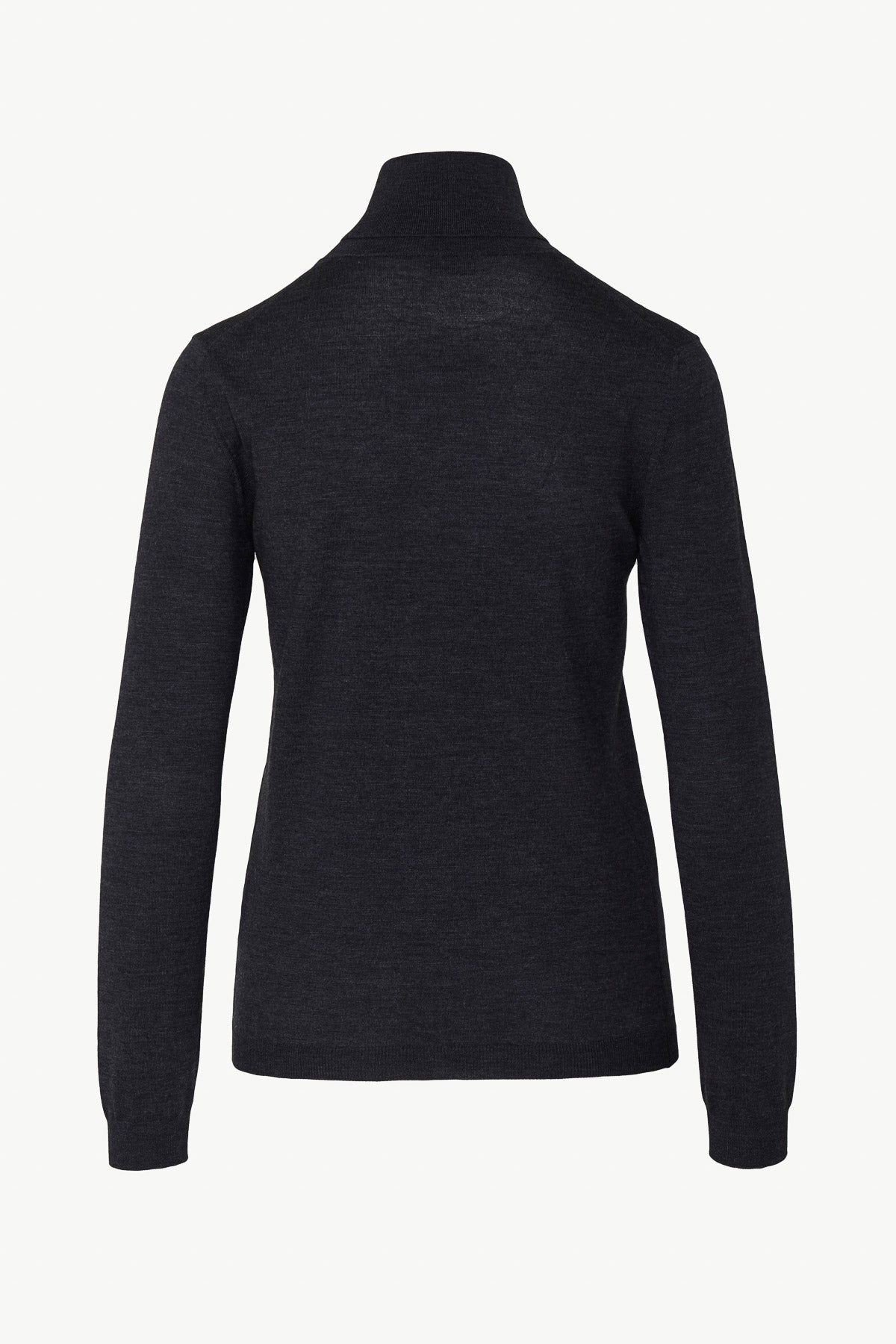 Long sleeved, turtleneck sweater in soft virgin wool knit.