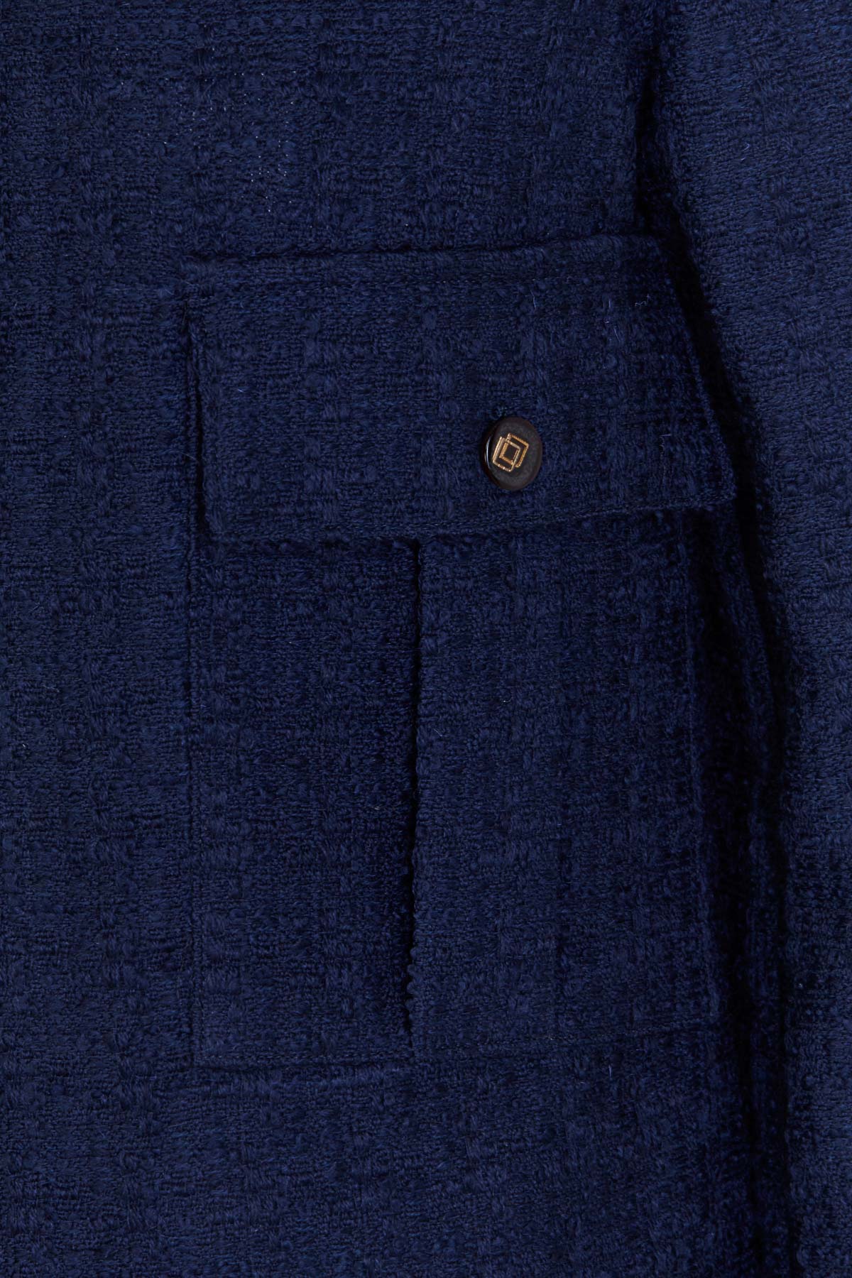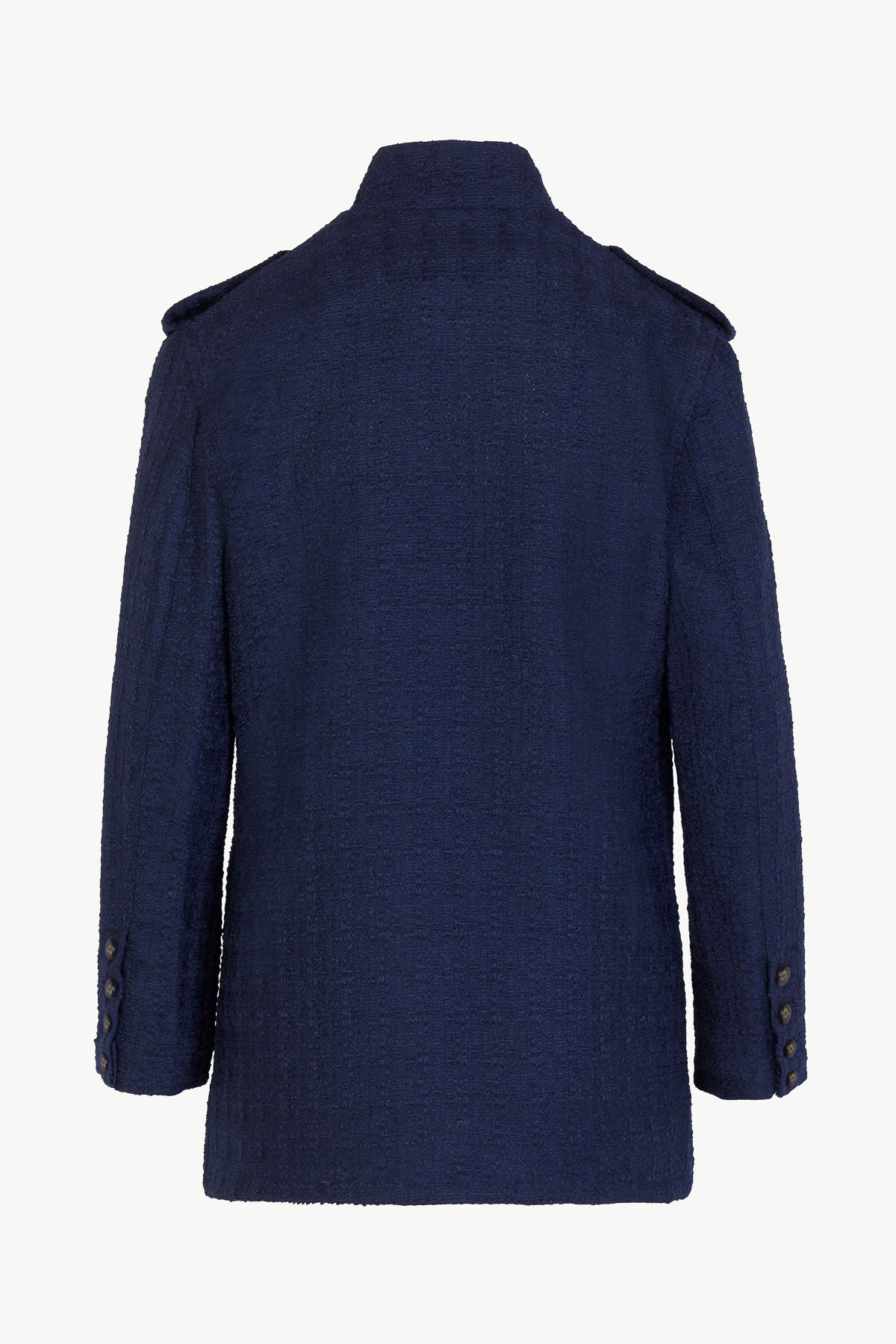Shirt jacket with band collar and front pockets in wool-blend bouclé.
