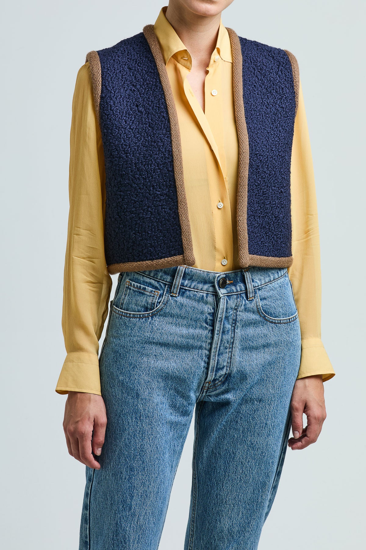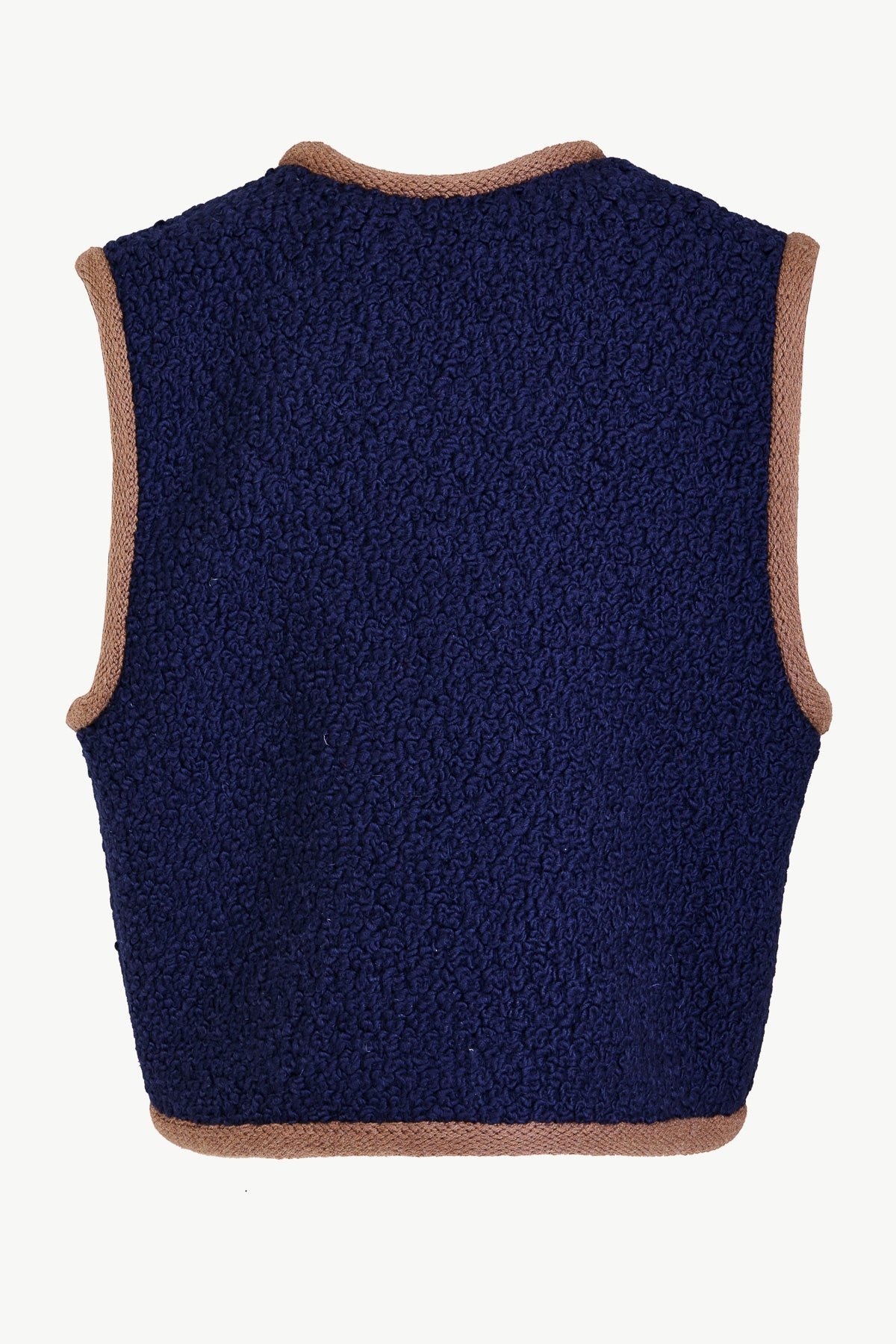 The Lia Vest is crafted from textured wool bouclé and finished with tonal knitted trims.