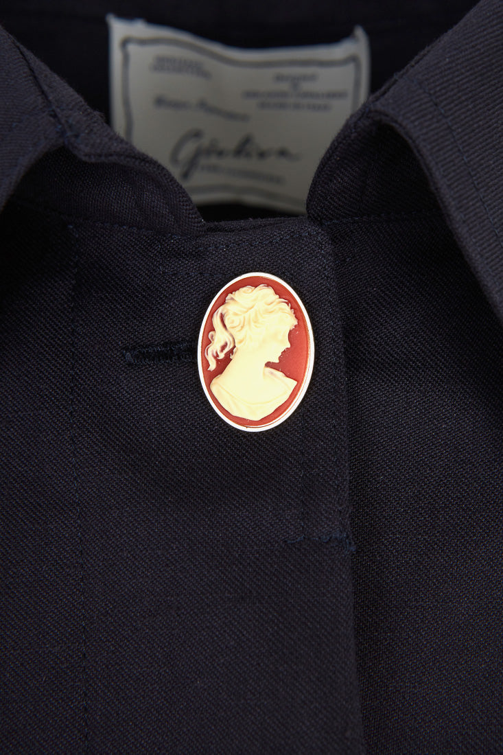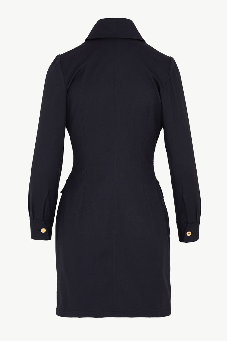 Fitted long sleeved short dress with pockets in cotton twill and cammeo button